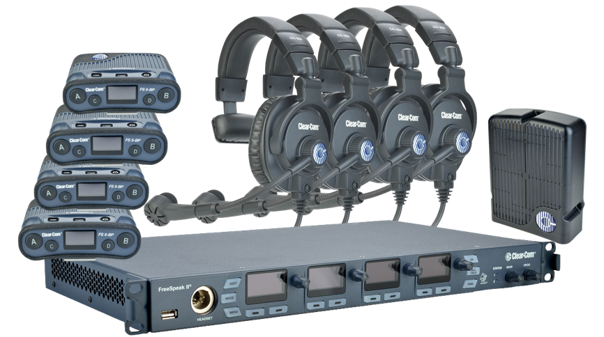 - (4) Clear-Com FreeSpeak II 1.9 GHz Beltpacks